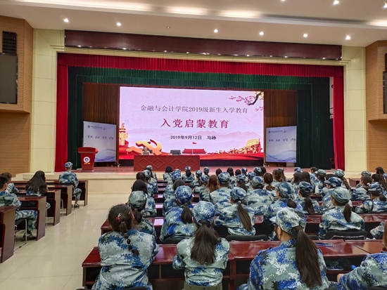 9月12日上午,我院在学生活动中心开展2019级新生入党启蒙教育活动,全体2019级新生参加,活动由学生金融会计支部书记马峥主持。