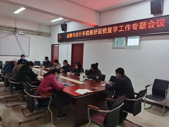 4月18日下午,金融与会计学院在SY5412会议室召开做好返校复学工作专题会议,会议深入学习了省教育厅《关于进一步做好全省高等学校有序返校复学工作的通知》精神及学校有关做好返校复学工作会议精神,全院科级以上干部参加会议。会议由院长宋建涛主持。