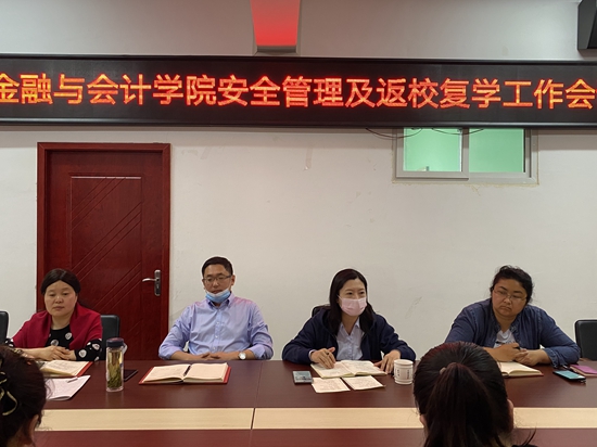 5月12日上午,金融与会计学院在SY5412会议室召开安全管理及返校复学工作会议,传达学校安全管理及返校复学工作会议精神,安排部署我院安全管理及返校复学相关工作。全院科级以上干部参加会议,会议由院长宋建涛主持。