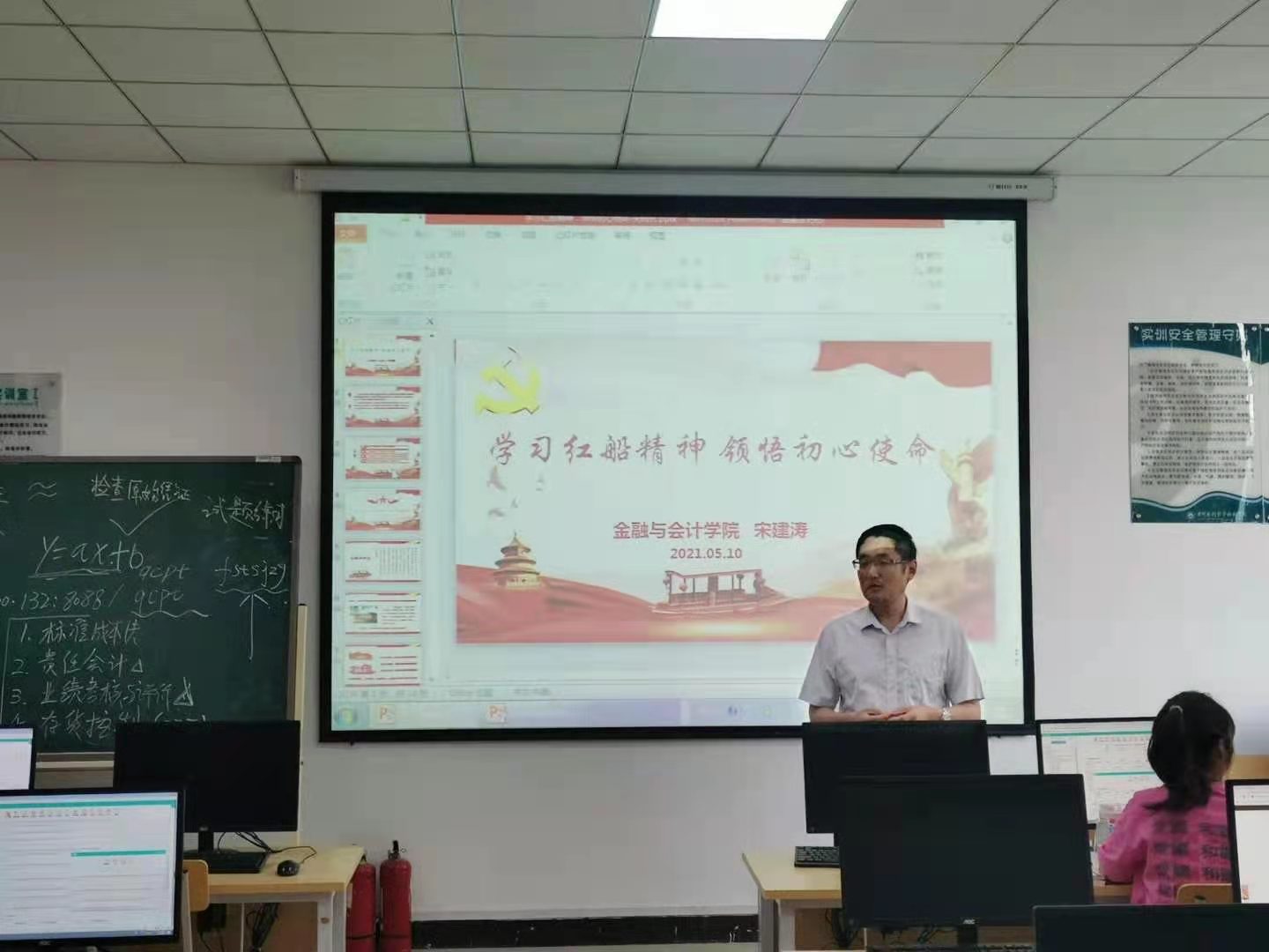 5月10日中午,金融与会计学院院长宋建涛在SY8311实训室以“学习红船精神 领悟初心使命”为主题,为学生干部讲专题思政课。