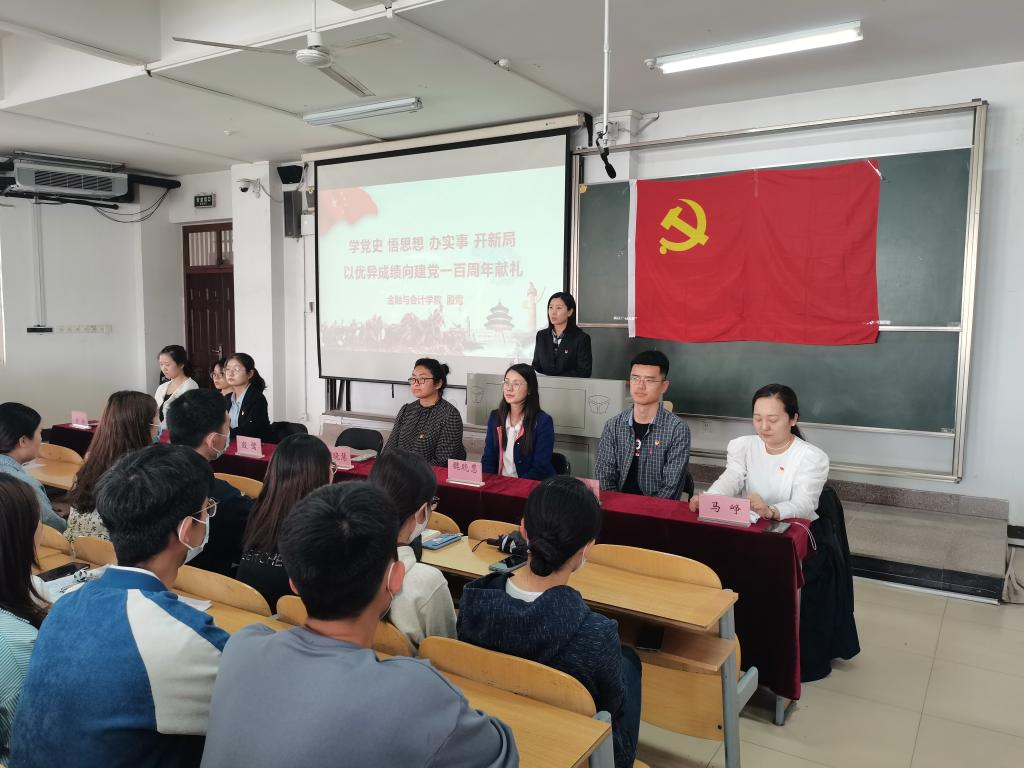 为深入推动党史学习教育, 4月30日中午,金融与会计学院党总支书记殷莺在JX6402教室,以《学党史、悟思想、办实事、开新局,以优异成绩迎接建党一百周年》为主题,向全体学生党员、入党积极分子上了一堂生动的思想政治教育课。