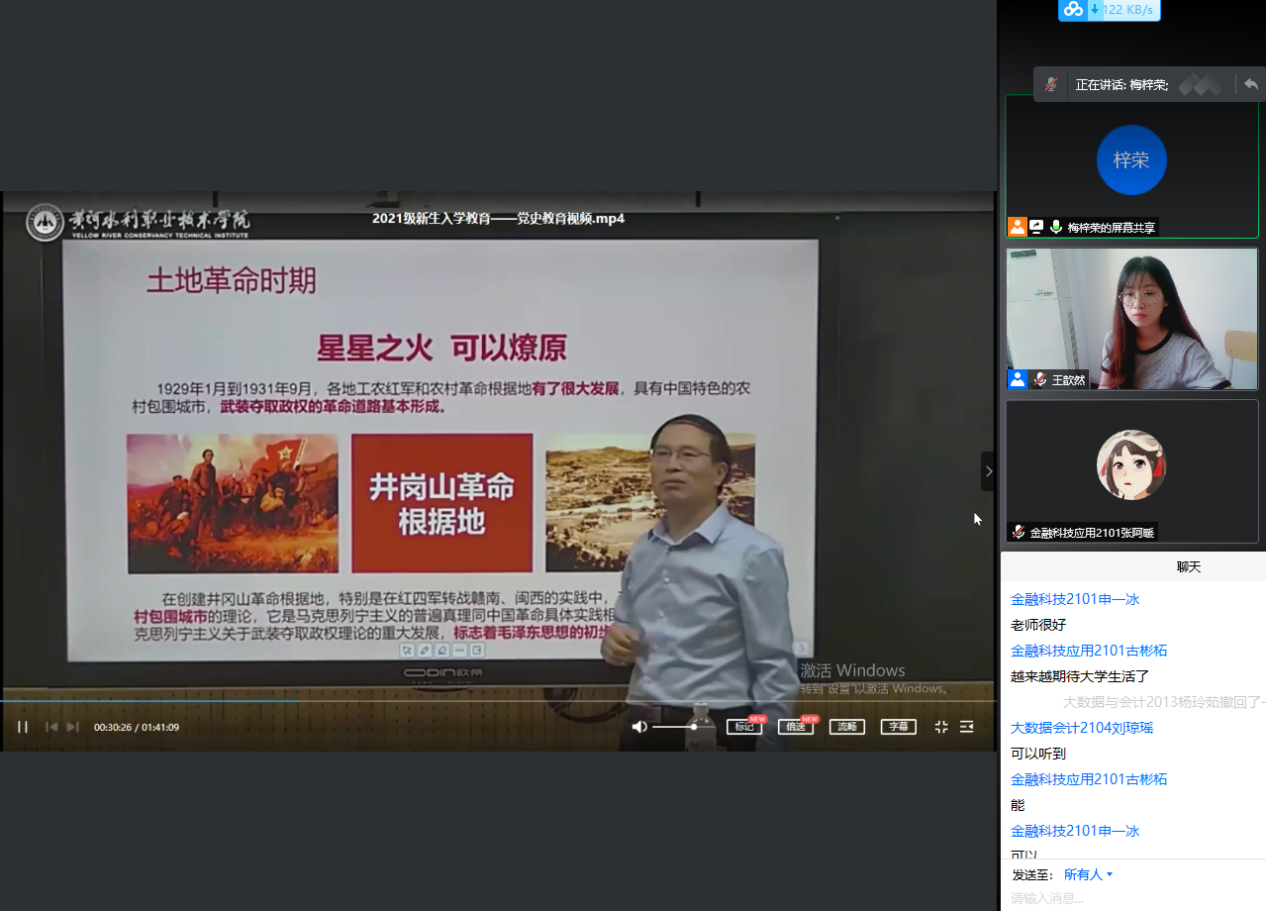在开学第一课主题班会中,辅导员组织同学们观看了河南省2021年秋季开学思政第一课,加强对新生的思想政治教育。辅导员结合当前疫情防控形势,召开了疫情防控主题班会,使同学们了解德尔塔病毒传染的严重性,督促大家增强安全防范意识,做好返校前、返校途中以及返校后的防护措施。
