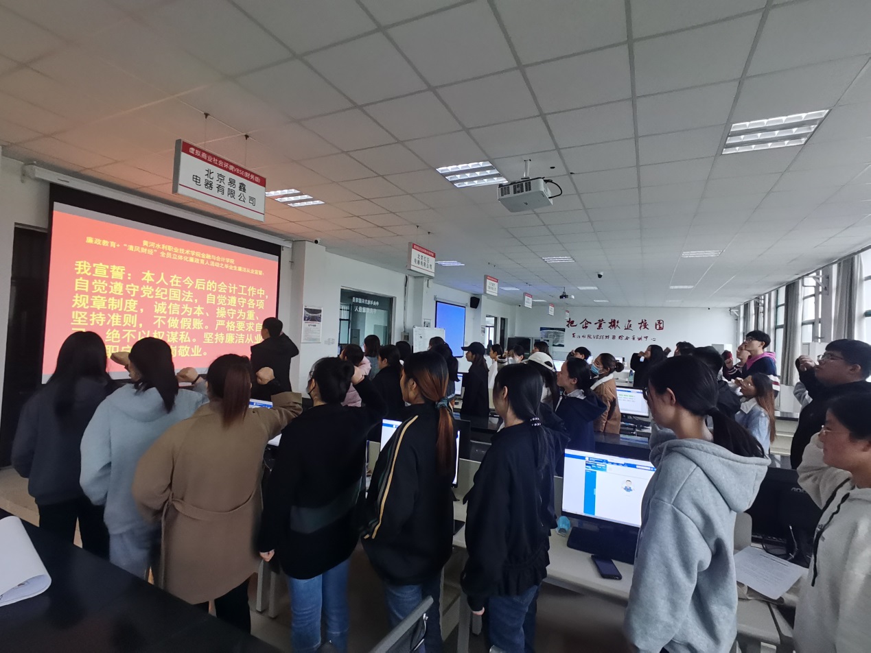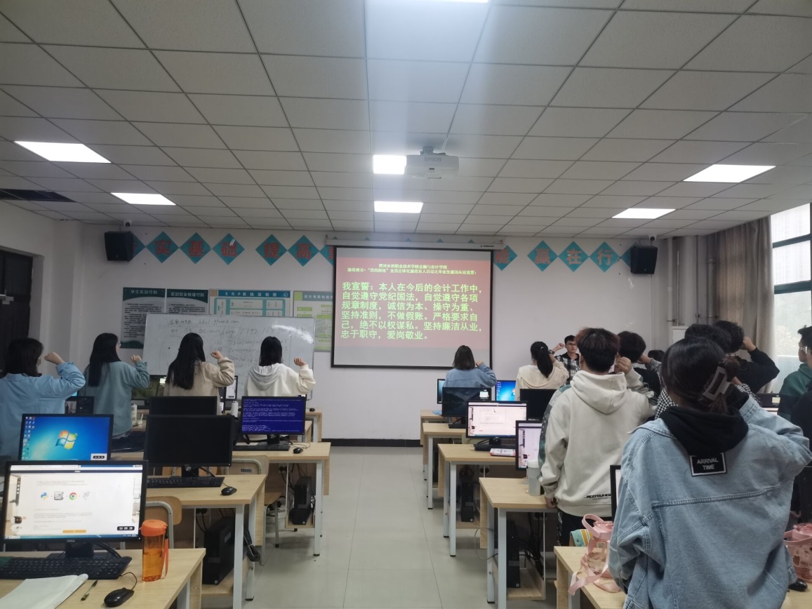 活动现场气氛热烈,全体学生庄严宣誓“诚信为本、操守为重、坚持准则、不做假账,坚持廉洁从业,忠于职守,爱岗敬业”,并郑重签订“廉洁从业”承诺书。