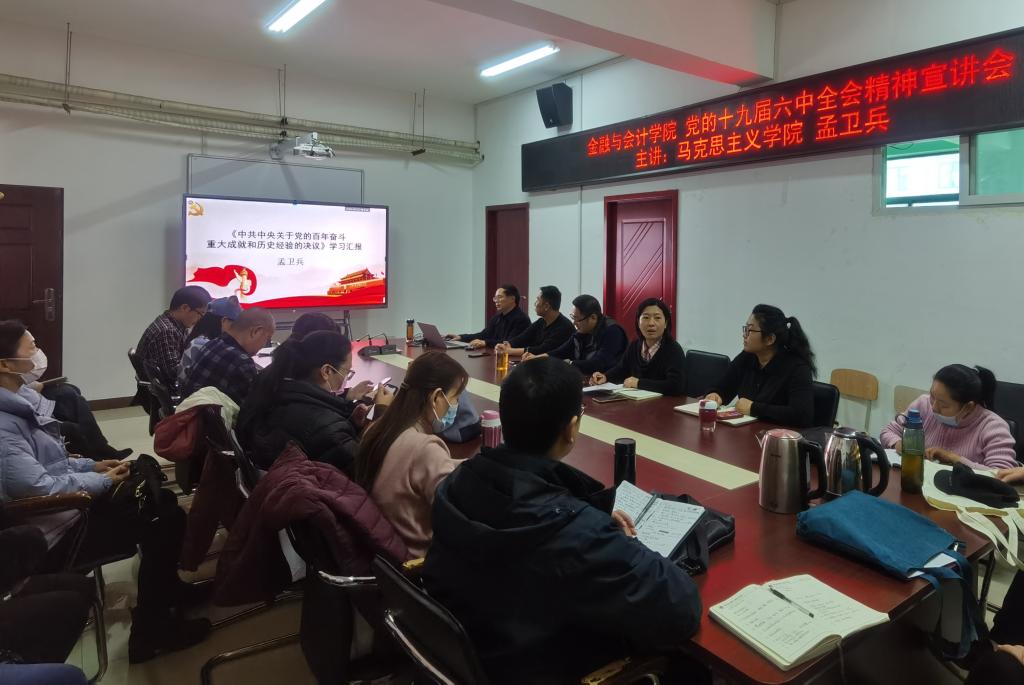 为深入学习宣传贯彻党的十九届六中全会精神,12月21日下午,金融与会计学院在SY5412会议室召开党的十九届六中全会精神宣讲会,全体教职工参加会议。学院党总支书记殷莺主持会议。
