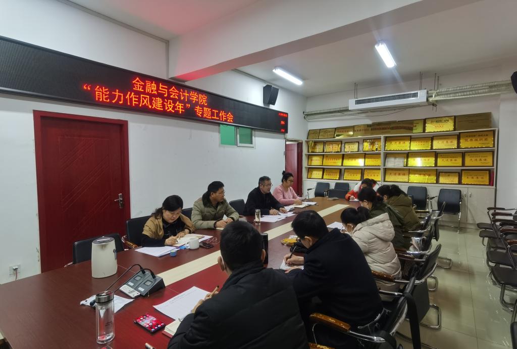 2月15日上午,金融与会计学院在SY5412会议室召开了“能力作风建设年”活动专题工作会议,学院全体科级以上领导干部参加了会议。会议由党总支书记吴宗奎主持。