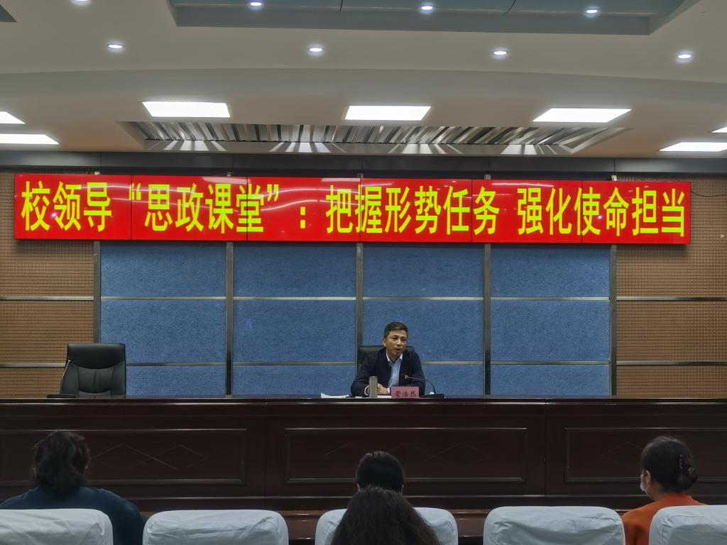5月10日下午,副校长菅浩然在3号实训馆学术报告厅,为分管联系学院师生上了一堂题为“把握形势任务,强化使命担当”的专题思政课。金融与会计学院、国际教育学院党政领导班子全体成员、辅导员和学生干部代表聆听了报告。报告会由金融与会计学院院长李冠军主持。