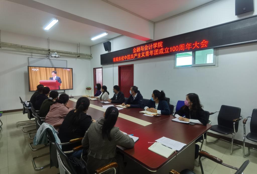 5月10日上午,庆祝中国共产主义青年团100周年大会在北京人民大会堂隆重举行,中共中央总书记、国家主席、中央军委主席习近平出席大会并发表重要讲话。金融与会计学院组织全体科级干部和学生代表在SY5412会议室集中观看大会盛况,认真学习习近平总书记重要讲话精神。