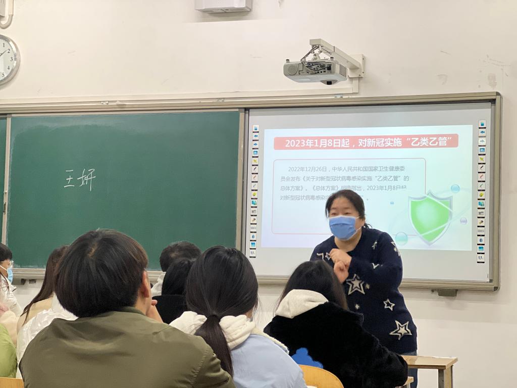 早上7点40分,菅浩然和听课教师来到JX5206教室,与学生一起共同听取授课教师王妍讲授《人身保险实务》课程。课堂上,王妍教学思路清晰,教学内容详实,课程内容与实际联系紧密,她通过分析行业发展、就业岗位需求导出教学内容,并积极引导学生学习《新型冠状病毒感染“乙类乙管”个人防护指南》,当好自身健康第一责任人,巧妙和学生互动,将思政教育及职业道德无痕融入课堂。