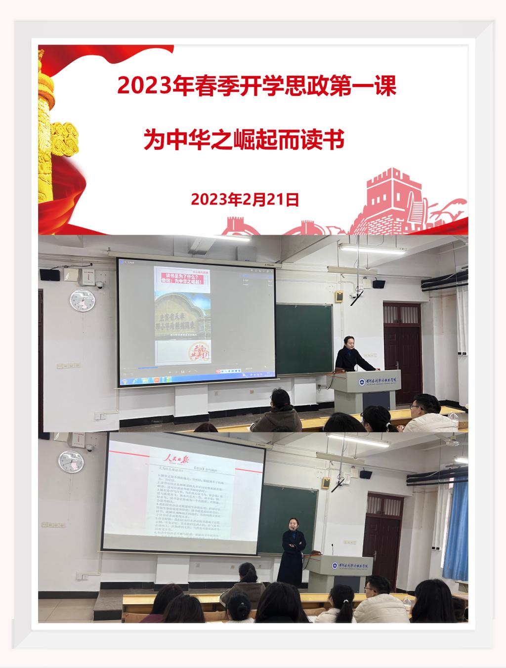 本学期是新冠疫情防控取得重大决定性胜利之后的第一个学期,春暖花开,春光珍贵。为进一步强化思想引导和价值塑造人,落实立德树人根本任务,培养合格的社会主义建设者和可靠接班人,学院党总支进一步提高政治站位,强化责任担当,组织全院教师持续推进课程思政,认真上好2023年春季“开学第一课”。