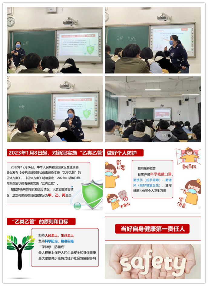 各位专业教师在开学第一课中注重党建引领、课程思政,在传授专业知识的过程中融入党的二十大精神、家国情怀、党对新冠病毒“乙类乙管”防控新要求、安全教育等相关内容,引导学生要“听党话感党恩跟党走”,树立“每个人是自己健康的第一责任人”的思想意识,自觉养成良好的卫生习惯,为学业精进努力成才创造良好条件。