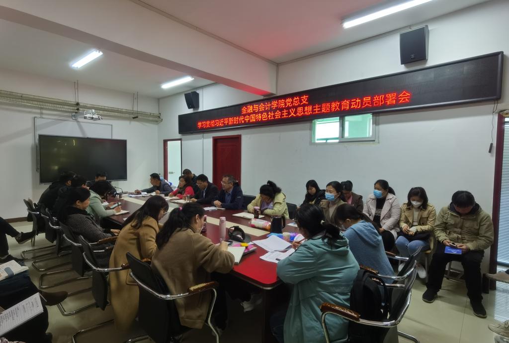 4月25日下午,金融与会计学院党总支在SY5412召开学习贯彻习近平新时代中国特色社会主义思想主题教育动员部署会。全体党员参加,会议由党总支书记吴宗奎主持。