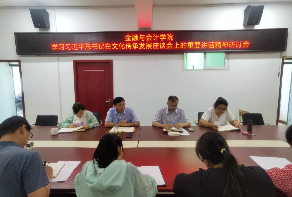 7月4日上午,金融与会计学院在SY5412召开学习习近平总书记在文化传承发展座谈会上的重要讲话精神研讨会,学院科级及以上干部参加了会议。会议由党总支书记吴宗奎主持。