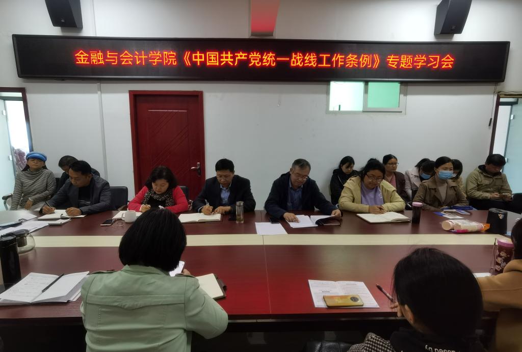 4月25日下午,金融与会计学院在SY5412会议室召开政治理论专题学习会,全体教职工参加,会议由院长李冠军主持。