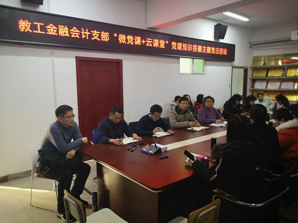 12月12日,教工金融会计支部在SY5412会议室召开“微党课+云课堂”党建知识答题主题党日活动。全体教工党员参加,活动由教工支部书记刘振威主持。