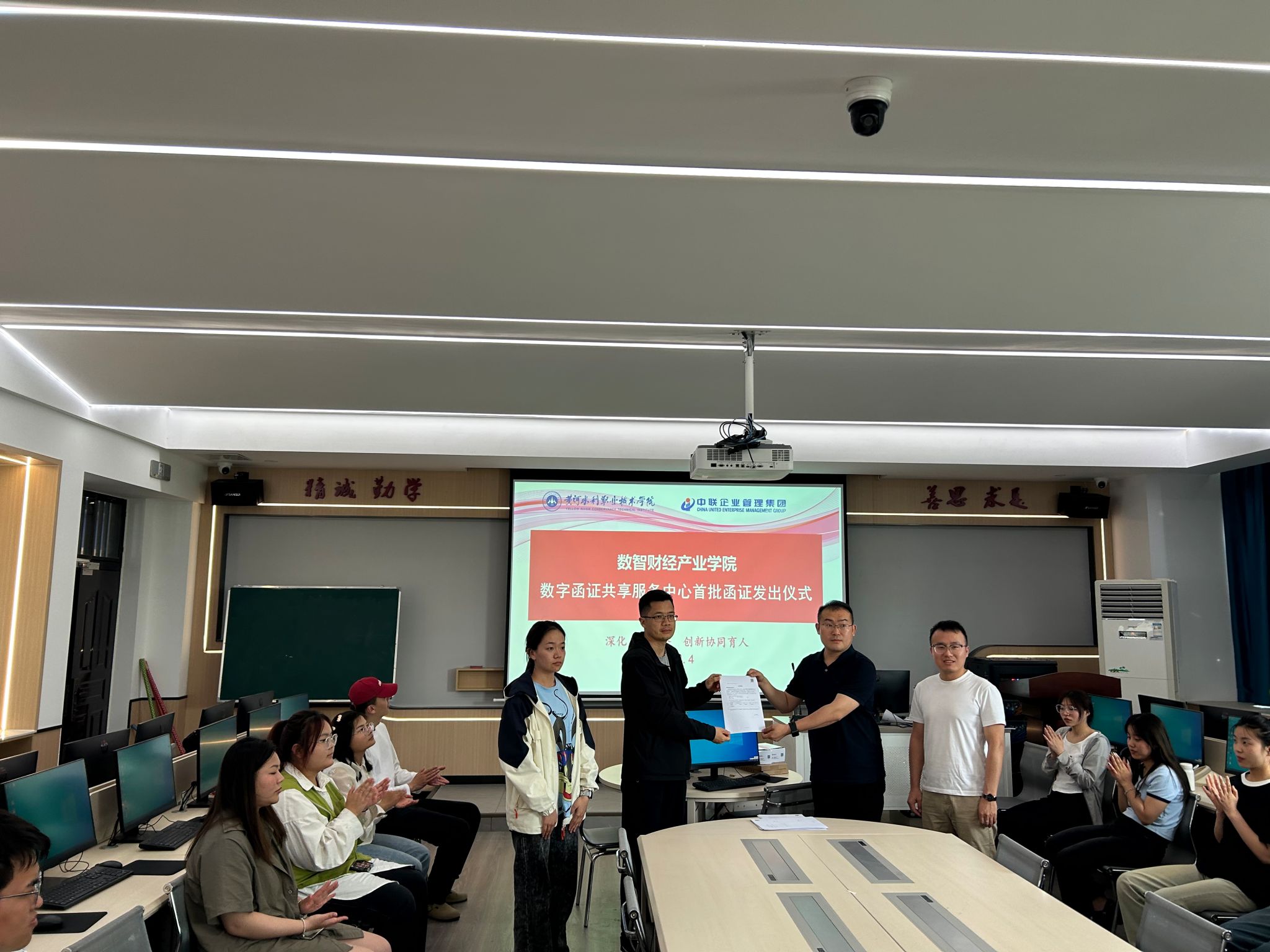 2024年4月18日,黄河水利职业技术学院数智财经产业学院首批函证业务发出仪式在8号实训楼数字函证共享服务中心举行。中联企业管理集团交付运营总监侯刘成、中联企业管理集团河南省区总经理赵飞鹏、中联企业管理集团企业培训讲师李天天、中联企业管理集团企业培训讲师李亦函,金融与会计学院班子成员、教师代表及学生代表等参加仪式。仪式由金融与会计学院副院长舒莎主持。