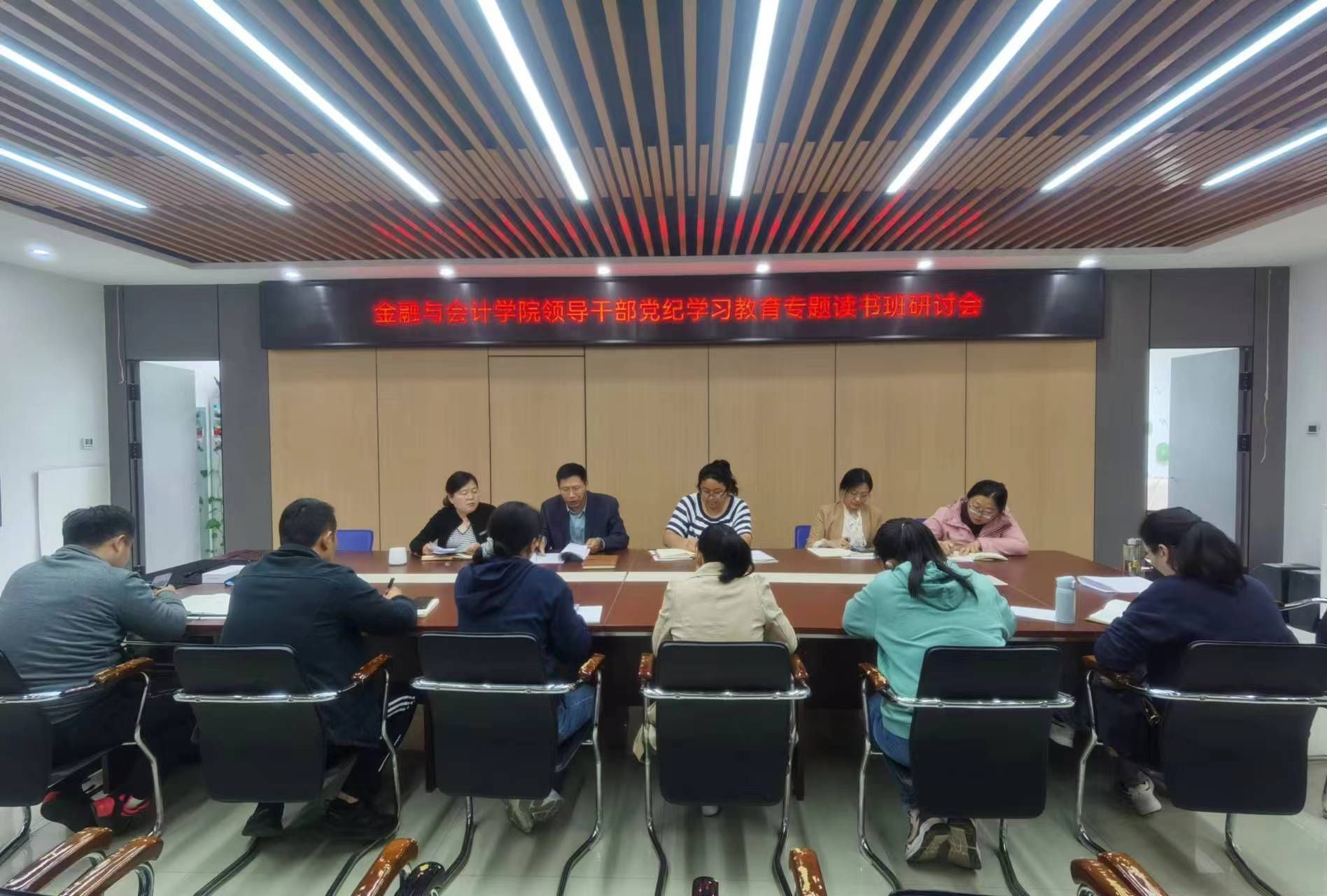 4月30日上午,金融与会计学院领导干部党纪学习教育专题读书班研讨会在SY5412会议室举行。院科级以上干部参加了研讨会,会议由党总支书记胡晓慧主持。