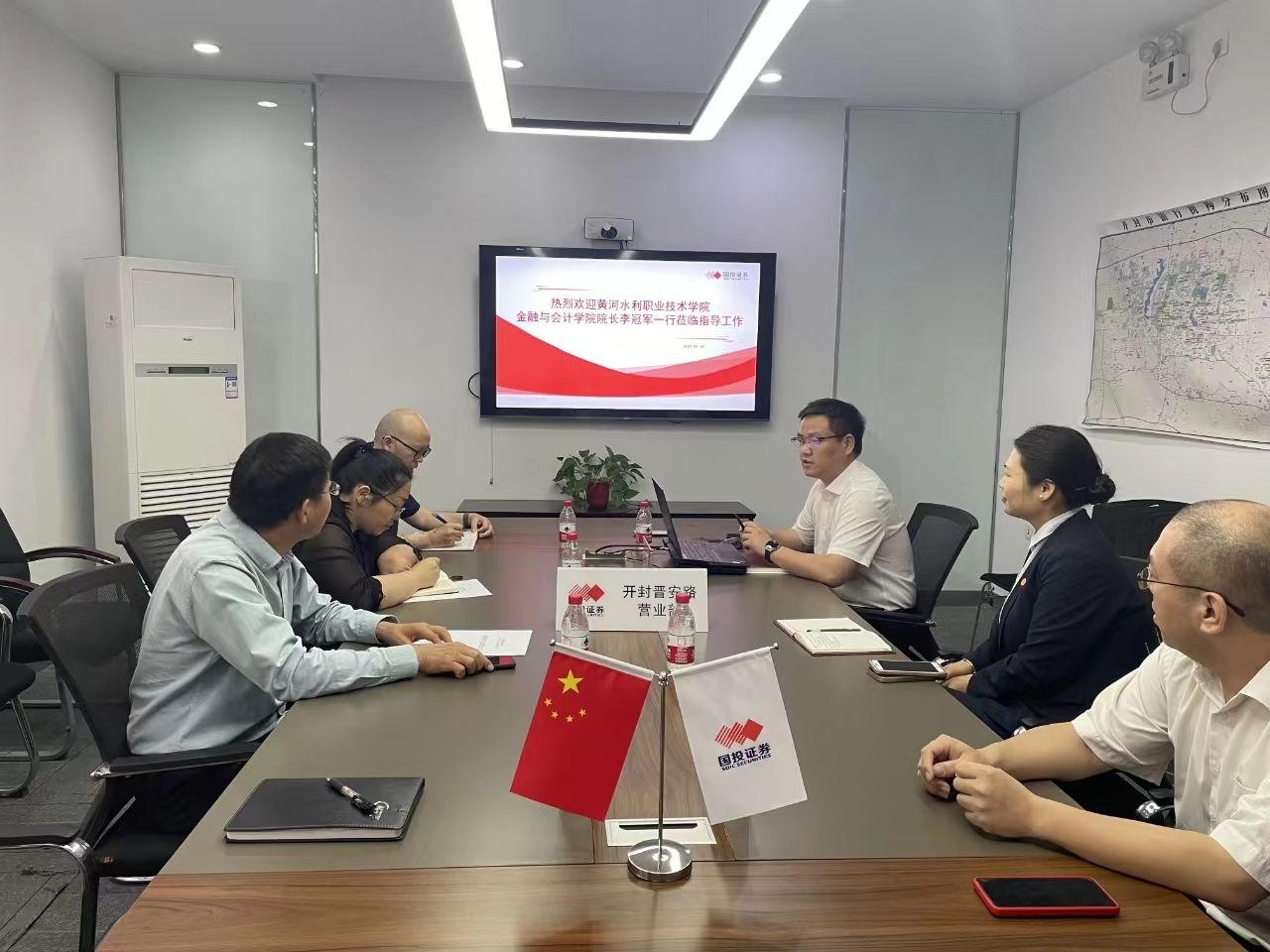 为进一步深化校企合作,推动产教融合,拓展金融与会计学院学生岗位实习与就业渠道,5月9日上午金融与会计学院院长李冠军、副院长舒莎、金融理财教研室教师王妍、杨立功一行到国投证券股份有限公司开封晋安路证券营业部考察调研,与营业部总经理高静、财富顾问冯琛琛、办公室主任周洋,共同洽谈校企双方合作事宜,开展访企拓岗促就业行动。