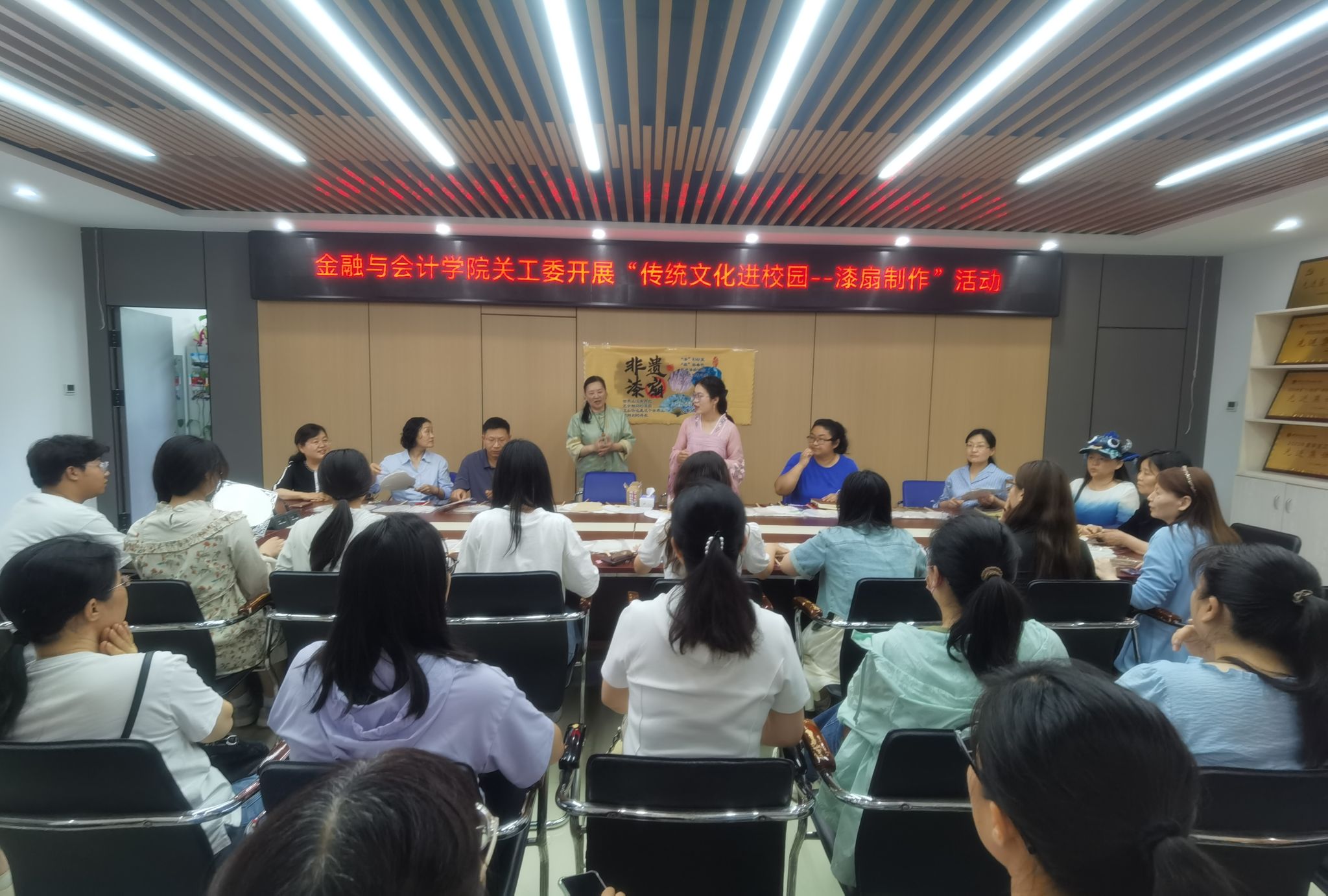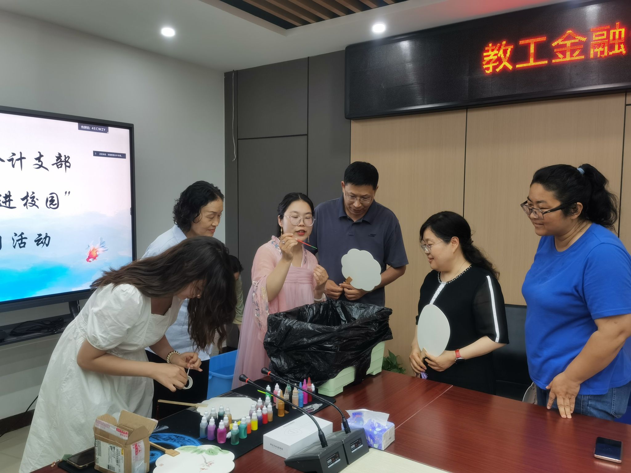 为传承和延续中华优秀传统文化,让传统文化走入校园,5月14下午,金融与会计学院关工委在SY5412会议室开展“传统文化进校园——漆扇制作”活动。学院关工委委员及学生代表参加了本次活动。活动由院关工委主任胡晓慧主持。