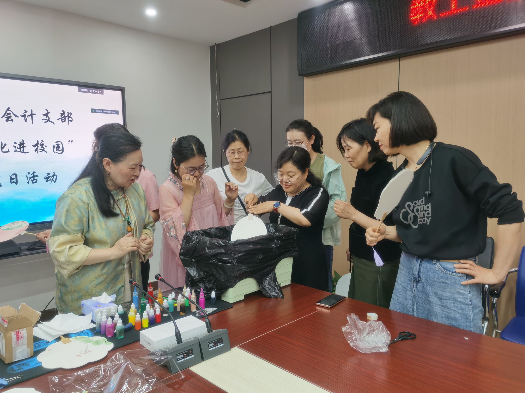 通过开展此次“传统文化进校园”主题党日活动,教工金融会计支部党员们亲身感受到中国传统文化的博大精进,感受到中国色彩的内涵丰富。每位党员在亲自制作漆扇的过程中,都在浸润中国传统文化的美好,体会劳动工作的光荣。经过自己的一番努力,通过自己的动手劳动,一面造型唯一风格唯美的漆扇就生成了,精神非常愉悦,身心完全放松。作为党员,自觉传承中国非遗文化的精气神,主动传播中国文化的真善美,树立坚定文化自信和道路自信的意识,这是每一位党员的政治自觉和光荣义务。与会党员们认为,这是非常好的思政素材,可以有效地运用在日常教学中去,引导学生重新认识中国传统文化,深刻理解体会中国色彩的美感,用心用力地书写建设美丽中国的家国情怀。