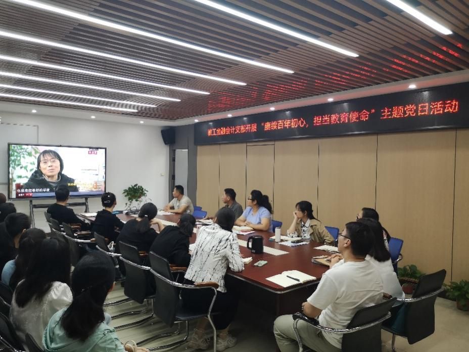 2024年9月24日下午,教工金融会计支部组织教工党员在学院5412会议室开展“庚续百年初心,担当教育使命”主题党日活动,活动由胡晓慧书记主持,全体教工党员参会。