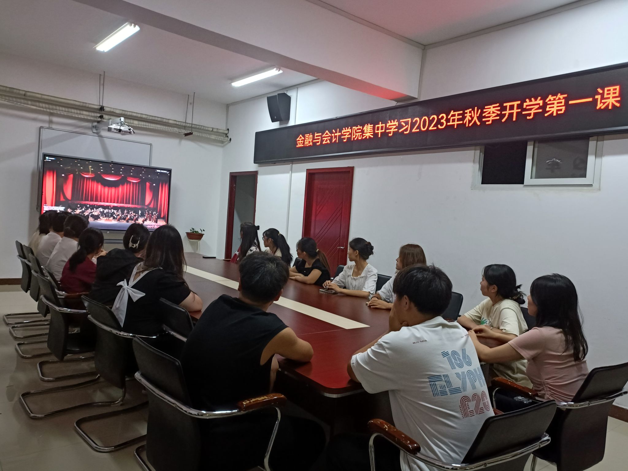 为深入学习宣传习近平新时代中国特色社会主义思想和党的二十大精神,引导师生深刻把握新时代伟大成就,推动课程思政与实践结合、与生活结合,不断提升立德树人实效,9月15日晚,金融与会计学院组织师生观看省委宣传部、省委教育工委、省教育厅举办的秋季开学思政第一课活动。