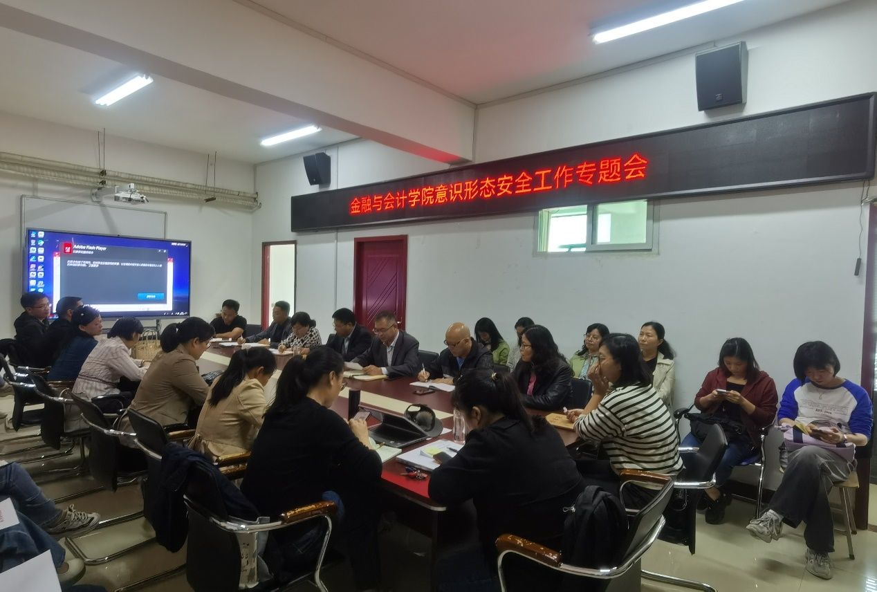 10月10日下午,金融与会计学院在SY5412会议室召开意识形态安全工作专题会,全体教职工参加。会议由院长李冠军主持。