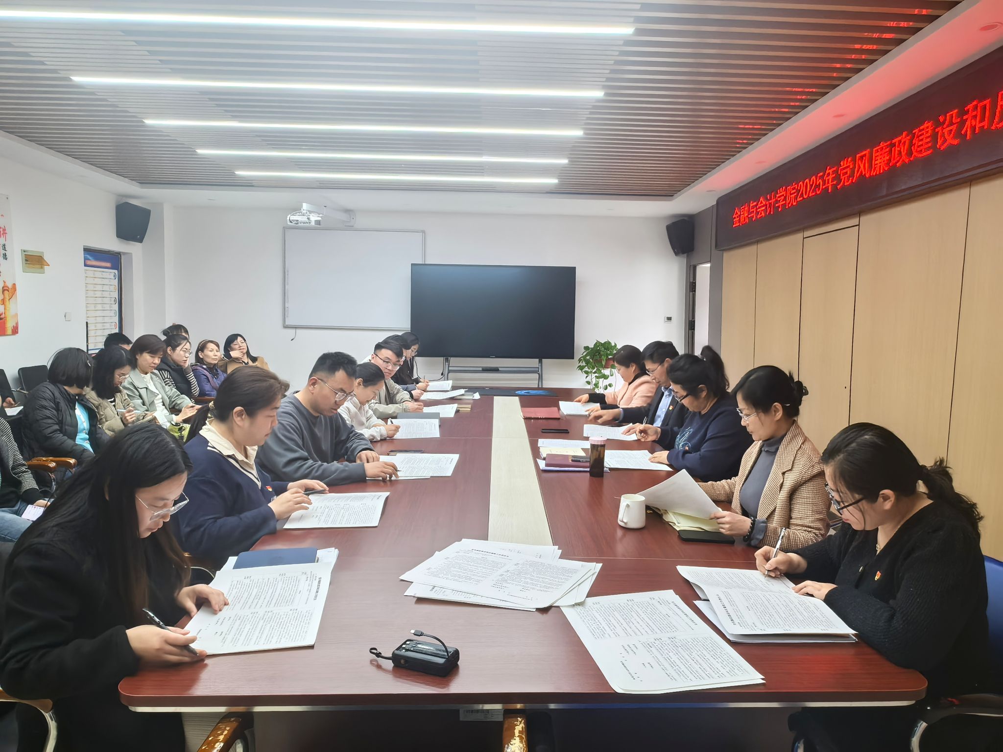 为深入贯彻落实全面从严治党要求,进一步压紧压实党风廉政建设主体责任,持续推进学院党风廉政建设和反腐败工作走深走实,4月1日下午,金融与会计学院在SY5412会议室举行2025年党风廉政建设和反腐败工作责任书签订仪式。会议由学院党总支书记胡晓慧主持,学院领导班子成员、科级以上干部、教研室主任及全体教职工参加会议。