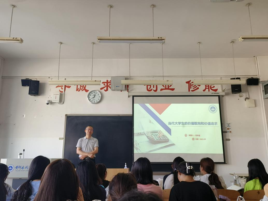 9月8日,学院党总支书记吴宗奎以《当代大学生的价值取向和价值追求》为题,在JX3407为大数据会计2201、2202班全体同学上专题思政课。
