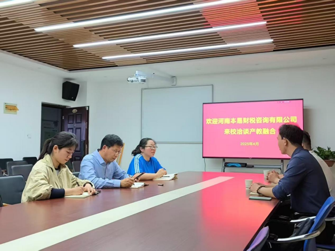 为加速推进产教融合与校企协同创新,实现人才共育,达成产业人才需求与高校人才培养供给的无缝对接。4月15日,盈泰财税集团(河南)有限公司总经理王浩一行;4月16日,河南本易财税咨询有限公司总经理李刚一行到我院开展交流座谈。金融与会计学院院长李冠军、副院长舒莎、校企合作办主任王歆然参与本次会议。