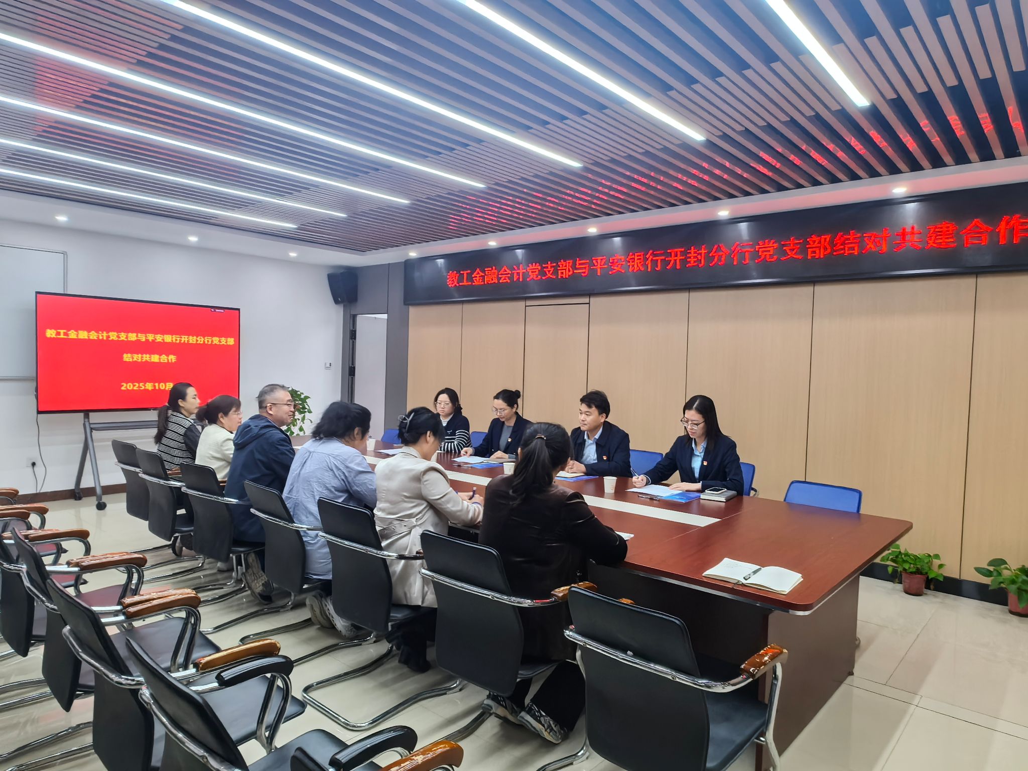 为深化党支部结对共建成效,推动党建与业务深度融合,10月15日,黄河水利职业技术大学教工金融会计支部与平安银行开封分行党支部联合开展“党建引领强素养,校银协同共提升”主题党日活动。学院党总支书记胡晓慧、院长吴宗奎、教工支部书记舒莎、平安银行开封分行行长党支部书记吉龙、平安银行开封分行运管部总经理温丹以及双方党支部党员代表参加了此次活动。