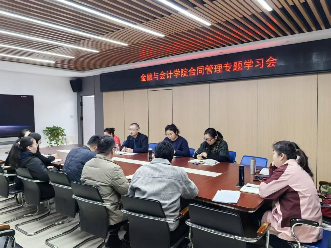 为规范学院合同管理流程,提升项目负责人员风险防控能力,9月23日,金融与会计学院组织召开了合同管理专题学习会。学院领导、科级干部、各项目负责人及关键岗位人员参加会议,系统学习学校招投标采购、专项资金管理等相关制度,强化契约精神与合规执行意识。