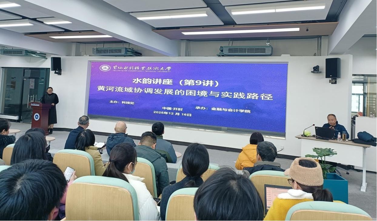 12月16日,金融与会计学院在SY7502师德大讲堂成功举办“水韵讲堂”系列学术活动,本期主题为“黄河流域协调发展的困境与实践路径”。讲座特邀河南大学黄河文明与可持续发展研究中心副主任陈家涛教授担任主讲,副院长舒莎主持活动,全院教师及学生代表共同参与。