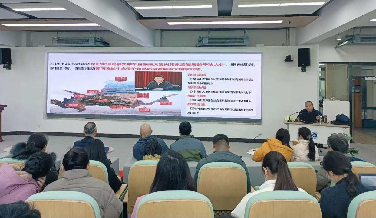 讲座伊始,陈家涛教授以黄河流域概况为切入点,系统梳理了黄河作为“中华母亲河”的文明脉络与自然特征。他指出,黄河不仅是华夏文明的发祥地,更承载着防洪保安、水资源供给、生态屏障等多重战略功能。针对黄河流域协调发展面临的突出问题,陈教授进行了深入剖析,他指出,当前流域存在水资源短缺、生态环境脆弱、人地矛盾尖锐、创新与开放水平不足、中心城市辐射带动弱、粮食生产经营困境等多重挑战。同时提出了流域九省共同努力,统筹推进生态保护与绿色发展,协同推进资源节约、清洁低碳、污染防治、环境保护和生态补偿的系统管理等实现路径。