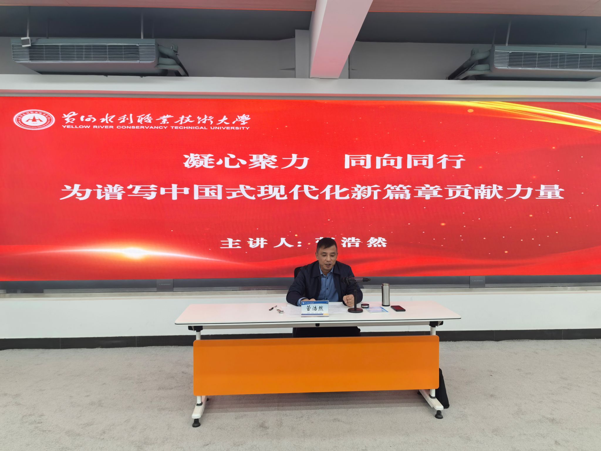 菅浩然以《凝心聚力 同向同行 为谱写中国式现代化新篇章贡献力量》为题,为在场师生开展了一场主题鲜明、内容翔实的宣讲活动。菅浩然围绕全会审议通过的“十五五”规划建议进行了系统宣讲。他首先回顾了“十四五”时期我国发展取得的重大成就,并结合教育领域,重点阐述了在落实立德树人根本任务、提升教育普惠服务水平、增强服务发展支撑能力等方面取得的新突破;随后,深入解读了“十五五”时期经济社会发展的主要目标,着重阐释规划中关于教育、科技、人才一体发展的重要部署,并立足河南实际,结合我省“1+2+4+N”战略布局,阐明了区域发展对高等教育提出的新要求。最后,他全面阐释了“十五五”时期必须遵循“六个坚持”重要原则,引导师生深刻把握国家发展的指导思想与行动纲领。