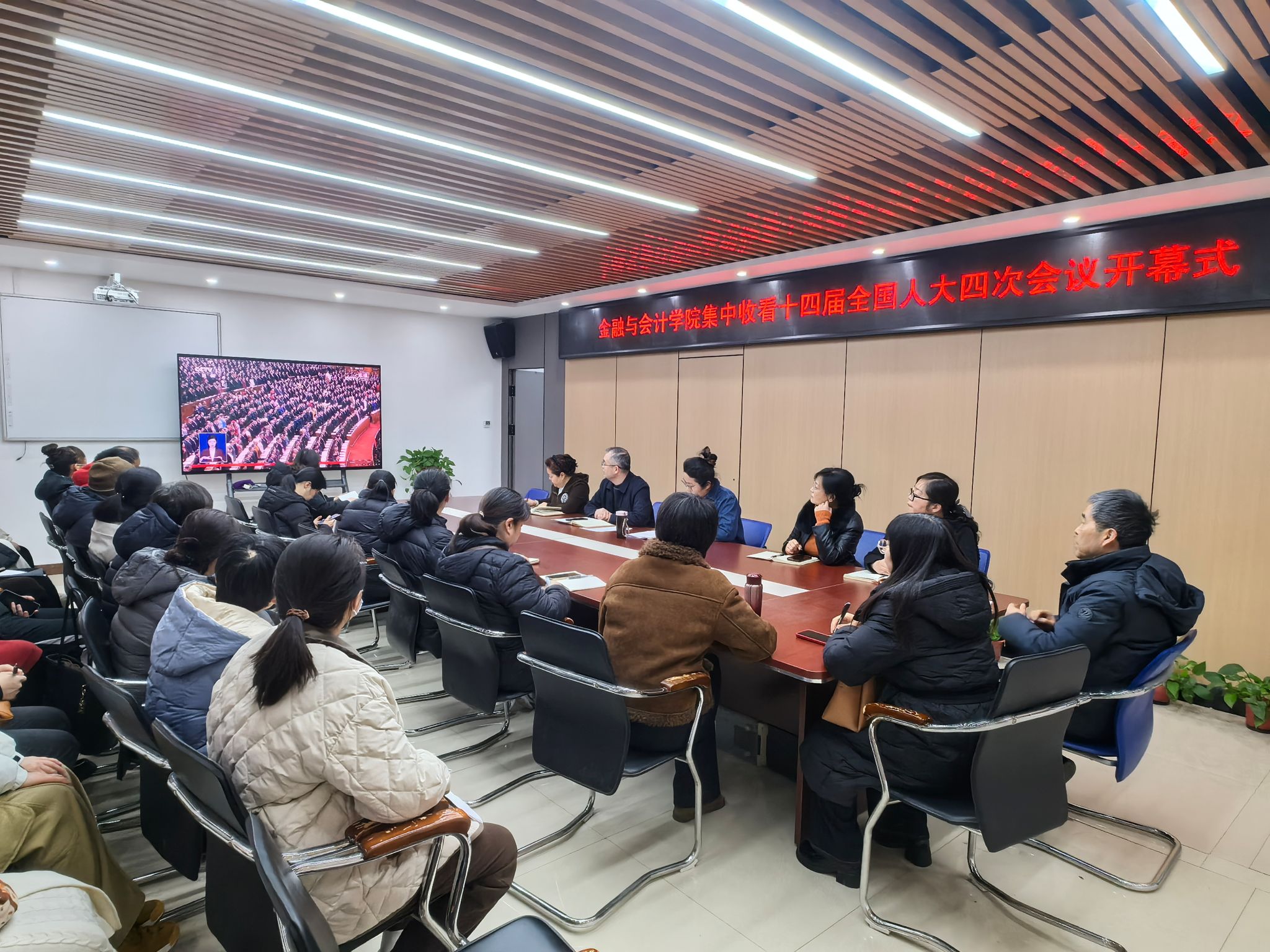 3月5日上午,十四届全国人大四次会议在北京开幕,金融与会计学院组织全体教职工在SY5412会议室集中观看大会开幕会直播盛况。与会人员认真聆听政府工作报告,学习贯彻全国两会精神,共同关注国家发展大计。