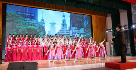 我系师生高唱《灿烂阳光下》的比赛现场