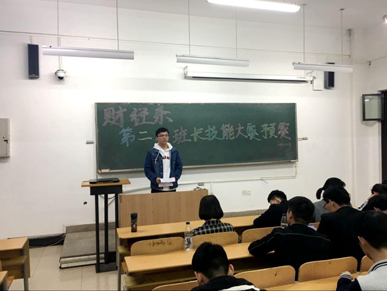 3月27日晚上,由财经系分团委主办,系学生分会承办的“第二届班长技能大赛预赛”在JX3307举行,担任此次比赛的评委主要是学生分会各部室主要负责人。全体2017级班长参加了本次比赛。