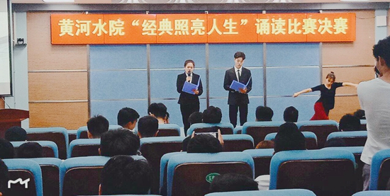 为弘扬中华民族优秀传统文化,提高人文素质和道德情操,推动校园文化建设,2018年5月15日下午3点,我校在3号实训楼学术报告厅隆重举行了以“经典照亮人生”为主题的诵读比赛。校党委宣传部副部长姚芬、教务处副处长赵兴安和基础部闫灵芝等三位老师担任比赛评委。