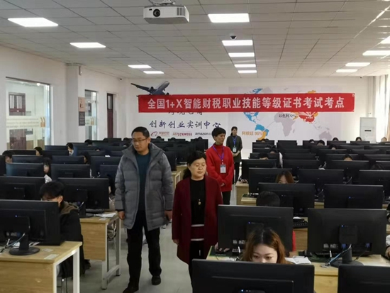 2019年12月29日,全国第一批“1+X”智能财税职业技能等级证书考试在黄河水利职业技术学院考点举行。来自金融与会计学院财务管理专业2018级的65位同学参加了本次考试。金融与会计学院院长宋建涛和副院长张会丽亲临考场,统筹整个考务工作。监考老师认真监考,忠于职守,整个考试有条不紊地进行,考场情况井然有序。