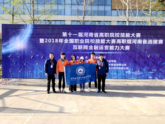 由河南省教育厅主办的2018年河南省高职院校技能大赛“互联网金融运营能力”赛项4月7日在郑州财税金融职业学院结束。我校财经系投资与理财专业闫明辉、贺书峰、李崇玉、李玲玲同学组成的代表队,在系主任宋建涛、专业老师赖朝果的指导下,沉着应战,努力拼搏,最终在23支参赛队中获得第6名的好成绩,荣获团体二等奖。