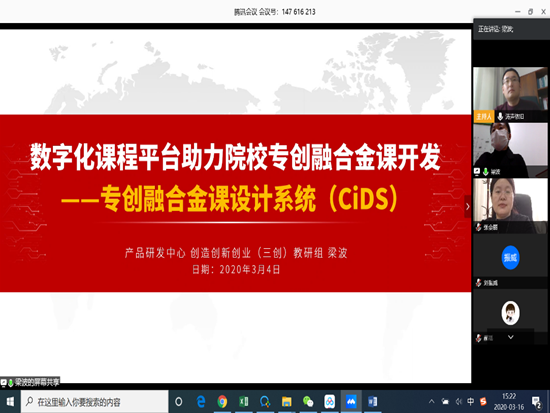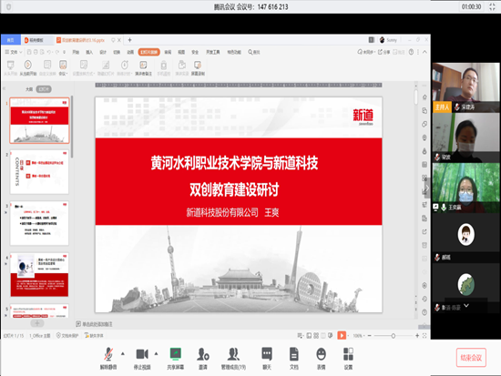 3月16日下午,金融与会计学院联合新道科技股份有限公司在网上召开了一场“专创融合”课程建设研讨会。新道科技股份有限公司副总裁宋健、创新创业教研总监梁波、创新创业领域专家陈雪松、王爽、张欣,河南分公司王慧彩、耿邻房、张军等参加了会议。金融与会计学院院长宋建涛、副院长张会丽以及各专业带头人与新道科技股份有限公司的专家共聚一堂,进行了热烈研讨。研讨会由金融与会计学院院长宋建涛主持。
