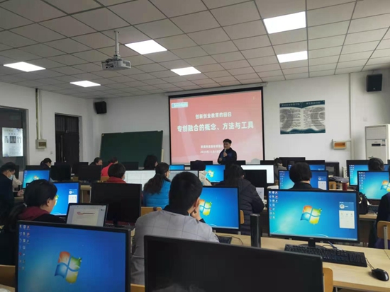 11月18日,“专创融合金课开发与评估系统验证课”暨专创融合课程建设培训班在我院实训室SX8314成功举办。我院副院长张会丽,全校各部门从事创新创业教育和指导创新创业大赛的40多名教师参加了培训。