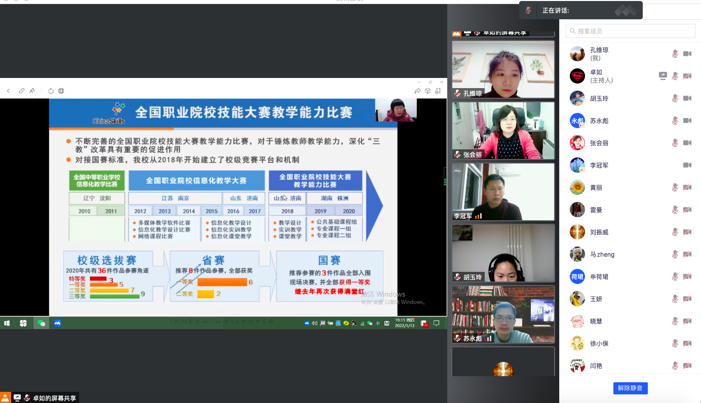 为促进我院教师教学能力和综合素质的提升,加强对全国职业院校技能大赛教学能力比赛的理解和优秀作品的学习,帮助教师备赛教学能力比赛,提高参赛作品质量,1月10日—14日,我院分别通过线下、线上的形式,集中组织院长、副院长、教研室主任、参赛教师和骨干教师20余人参加专题直播培训。