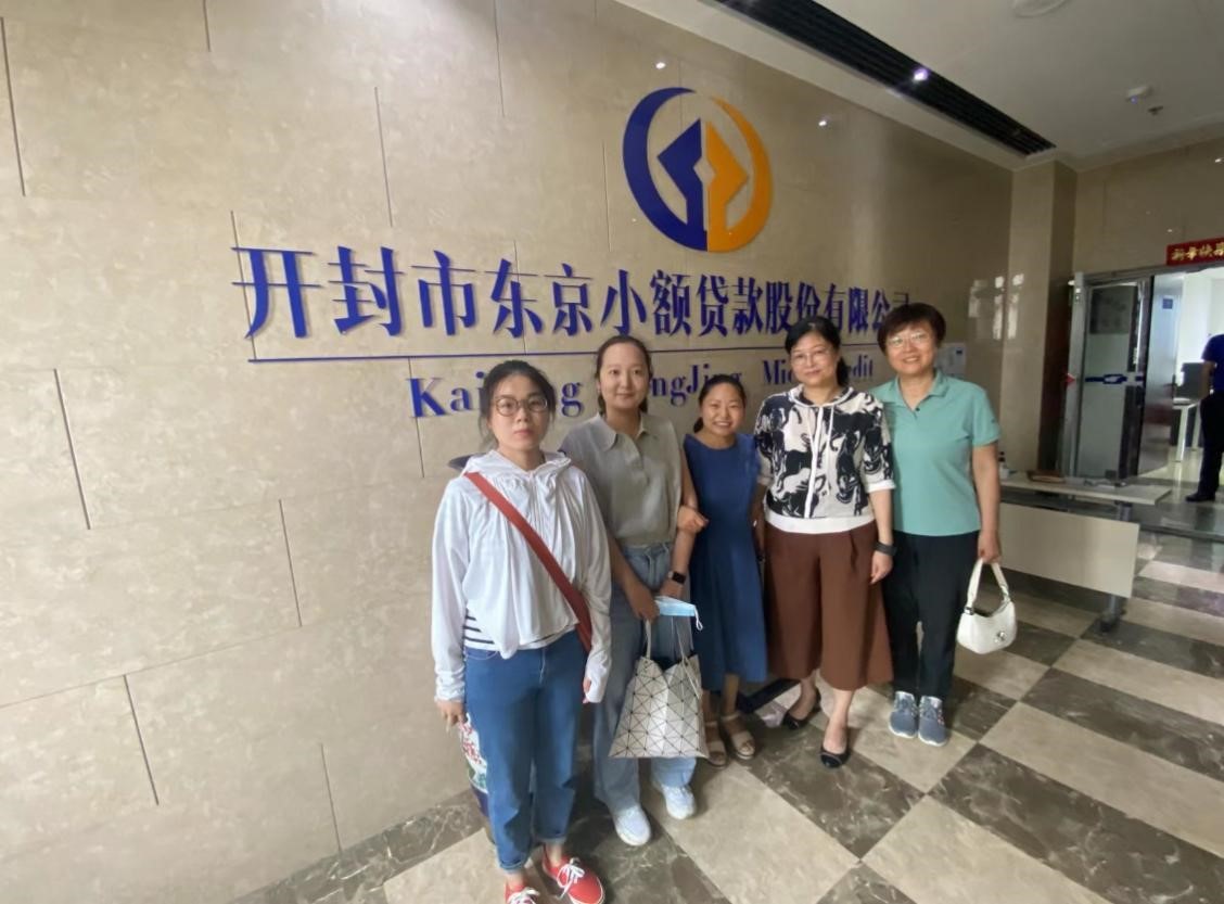 7月27日,在开封市,胡玉玲带领李培红、马峥和闫艳三位老师,先后走访了开封市东京小额贷款股东有限公司、开封市齐力预应力设备有限公司和河南盛誉财务集团公司。