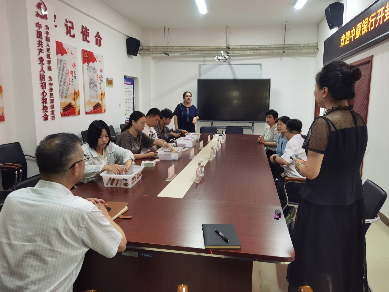 院长李冠军介绍我院专业发展、产教融合、校企合作基本情况,金融理财教研室主任王妍介绍了全国职业院校技能大赛智慧金融赛项对银行基本技能的考核要求,并对前期中原银行开封分行对我院指导教师手工点钞技能操作的业务指导表示感谢,双方就大赛指导、企业岗位实习、兼职教师聘请等方面展开深入交流并达成共识,以教促产、以产助教。会后,我院四名参赛选手进行多指多张手工点钞现场展演,刘晓萍总经理等四人手把手对学生进行业务技能指导,助推我院岗课赛证有效融通,拓展校企合作、协同育人的方式方法,不断提高金融专业人才培养质量,更好地服务区域经济社会发展。