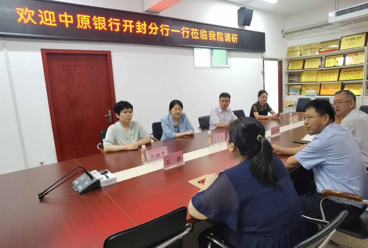 产教融合,校企同行。2023年9月1日,中原银行开封分行运营管理部总经理刘晓萍、行政保卫部(金融科技部)总经理马培军、工会副主任王亚姣、运营管理部总经理助理李颖一行四人莅临金融与会计学院进行调研,并观瞻我院智慧金融大赛参赛选手银行基本技能展演,学院党总支书记吴宗奎、院长李冠军、学院办公室主任杨阳、金融理财教研室主任王妍参与调研。