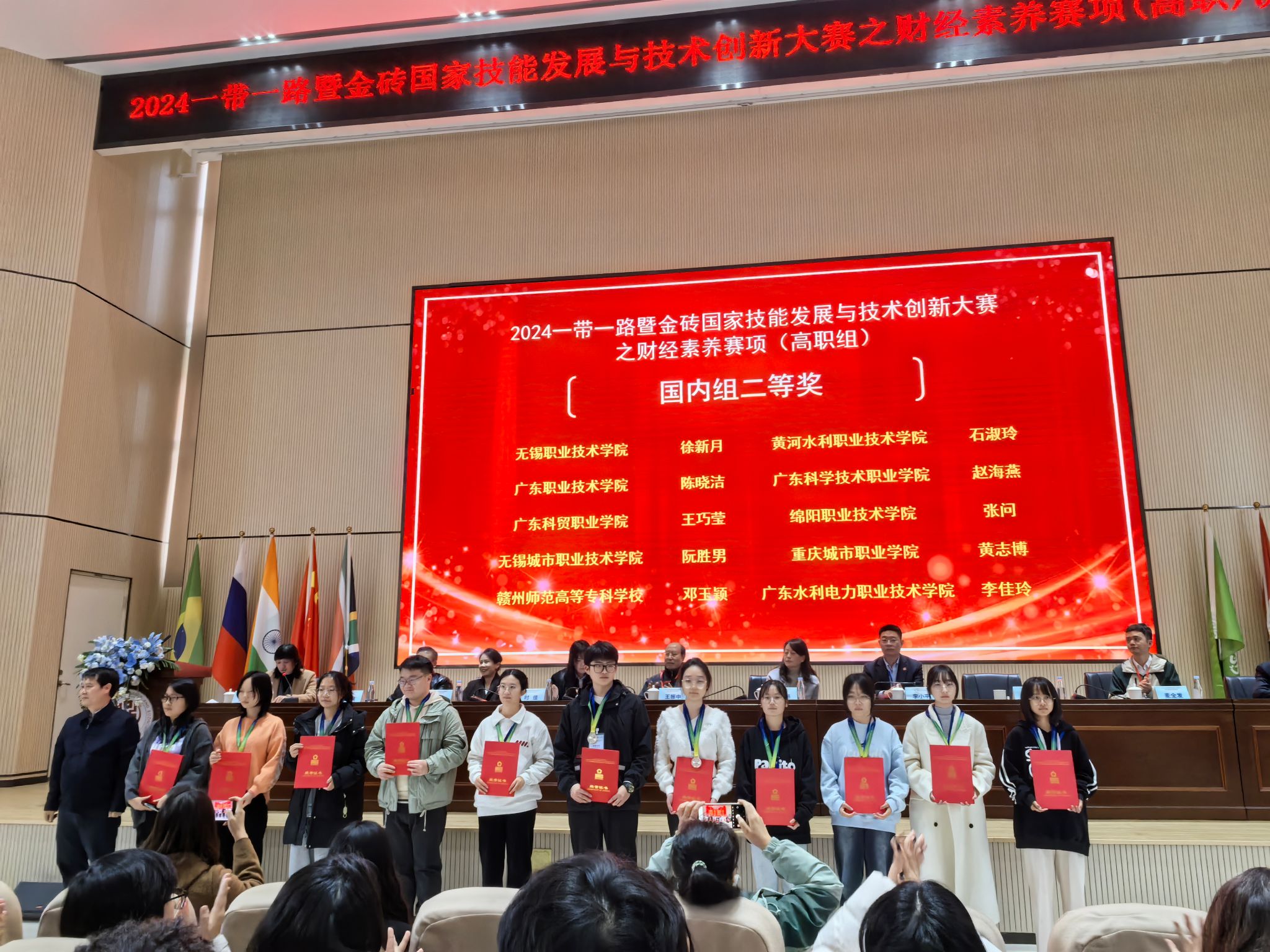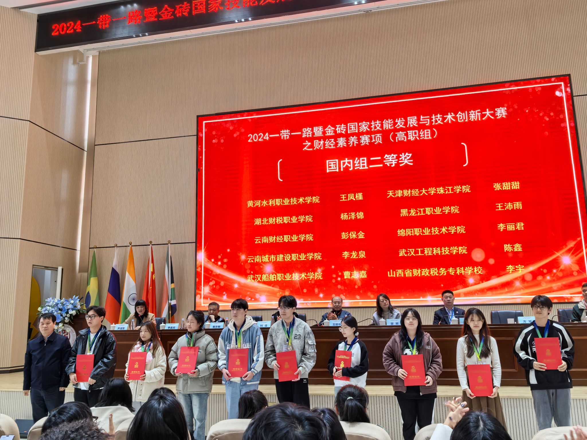 2024年11月23日,2024一带一路暨金砖国家技能发展与技术创新大赛第二届财经素养赛项在云南财经职业学院举行。我校选手大数据与会计(注册会计师方向)2401班石淑玲、王凤槿均获得国赛二等奖。