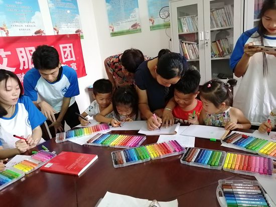 活动共分为四个环节: 首先,我院 “青少年禁毒防艾服务团”的三位学生干部为留守儿童和村民普及禁毒防艾知识、青少年暑期安全知识和环境保护及垃圾分类知识;活动第二项,实践队学生为留守儿童传授课外知识,带领孩子们开展“美丽家乡”绘画比赛活动,孩子们用手中水彩笔画出家乡的一草一木,表达了对家乡的热爱;活动第三项,实践队成员深入村庄、田间地头,调研邹寨村的经济发展、医疗卫生、垃圾处理情况,了解农村新风貌;最后,实践队成员和邹寨村村委会书记在村委会开展座谈,共同探讨农村留守儿童教育问题、垃圾分类、电商发展等问题,本次活动受到了邹寨村村委会的大力支持。