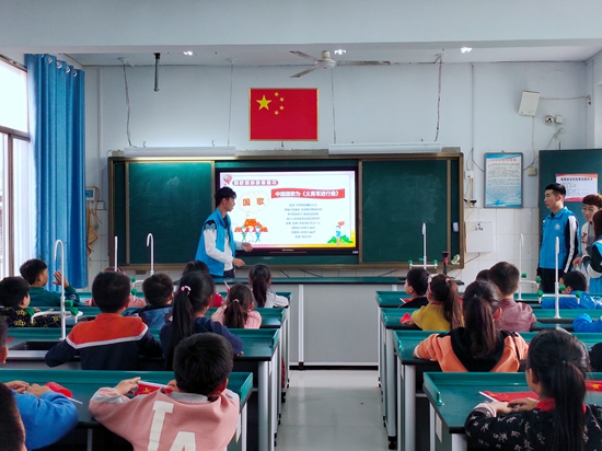 志愿服务活动分为三个环节,首先,我院“小水滴”温暖童心志愿服务队成员刘正为小学生讲解了国旗、国歌、国徽的知识,引导小学生规范使用国旗、国歌、国徽,维护国旗、国歌、国徽尊严,弘扬爱国主义精神,培育爱国主义情怀;活动第二项,志愿服务队成员王恒琛讲述了英雄先烈的爱国事迹,通过弘扬革命精神,对小学生开展理想信念教育;活动第三项,观看庆祝中华人民共和国成立70周年阅兵式剪辑,与小学生们提问互动,增强小学生的民族自豪感、使命感;最后志愿服务队成员向小学生发出“爱国从自己做起”的倡议,整场活动在大家齐声高唱国歌中结束。