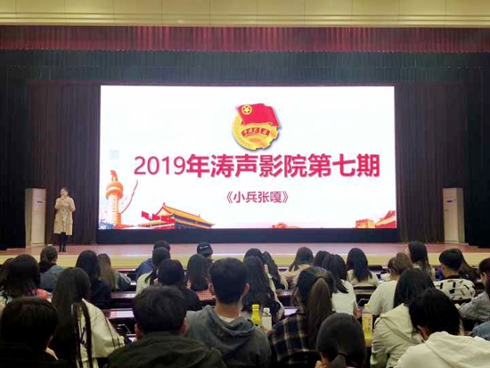 为回溯战争年代,向革命党人致敬,弘扬和培养广大学生强烈的民族责任感,我院于2019年4月20日承办了第七期“涛声影院”观影活动,在学生活动中心播放红色经典电影《小兵张嘎》,以缅怀先烈、不忘国耻,激发学生爱国热情。